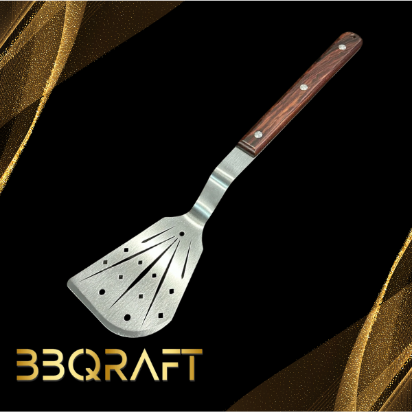 The Excalibur Spatula is perfect for standard grill cooking and boasts a large radius corner that works perfectly when grilling in your favorite cast iron skillet.
