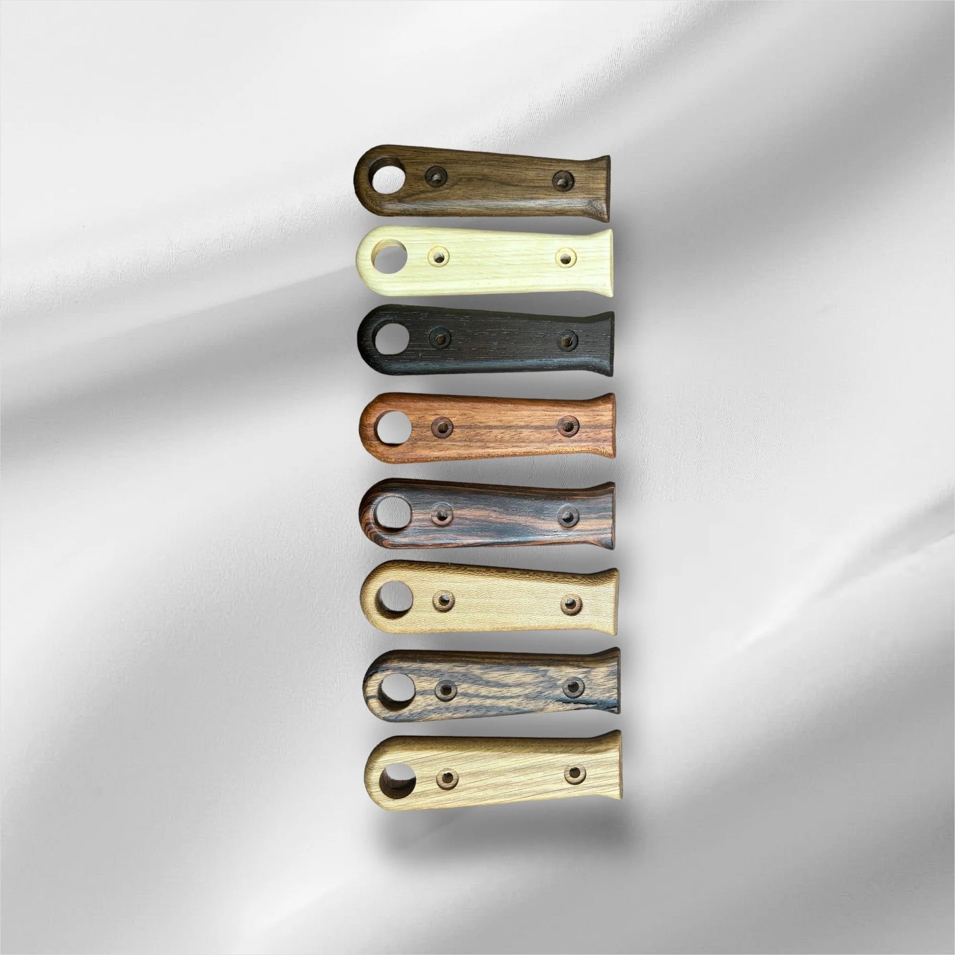 We offer several beautiful hardwood handle styles for you to choose from. What sets BBQraft's Excalibur line apart from any other tool on the market is the ability to switch your scales (handles) out with new scales at any time since our tools are assembled with removable 601SS barrel bolts.